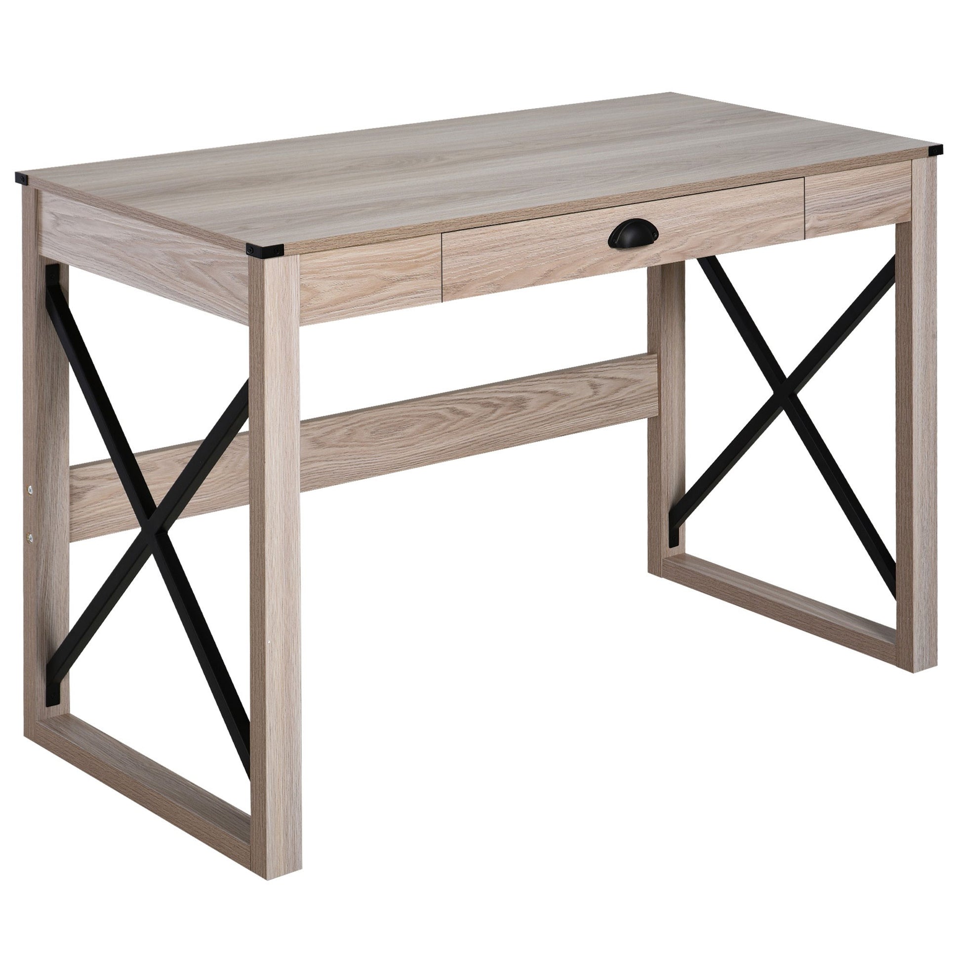 44 inch Home Office Computer Desk, Rustic Writing Desk, Farmhouse Workstation with Storage Drawer, X-Frame